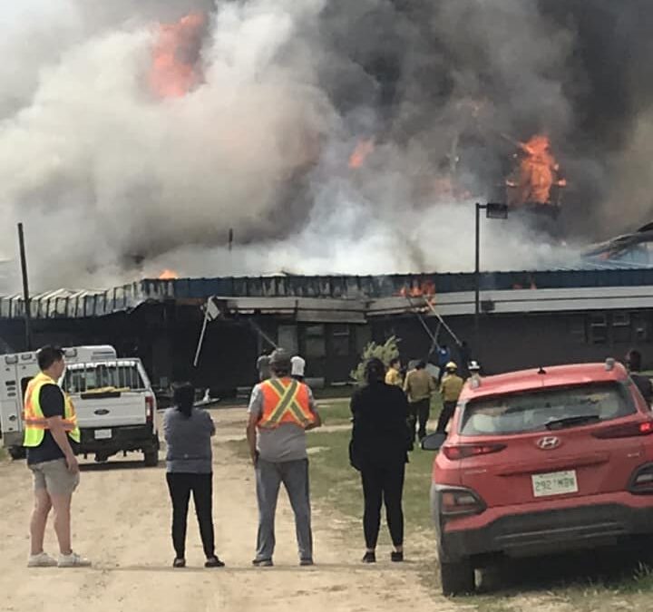 Waterhen School fire – courtesy Sharlene Fiddler Facebook