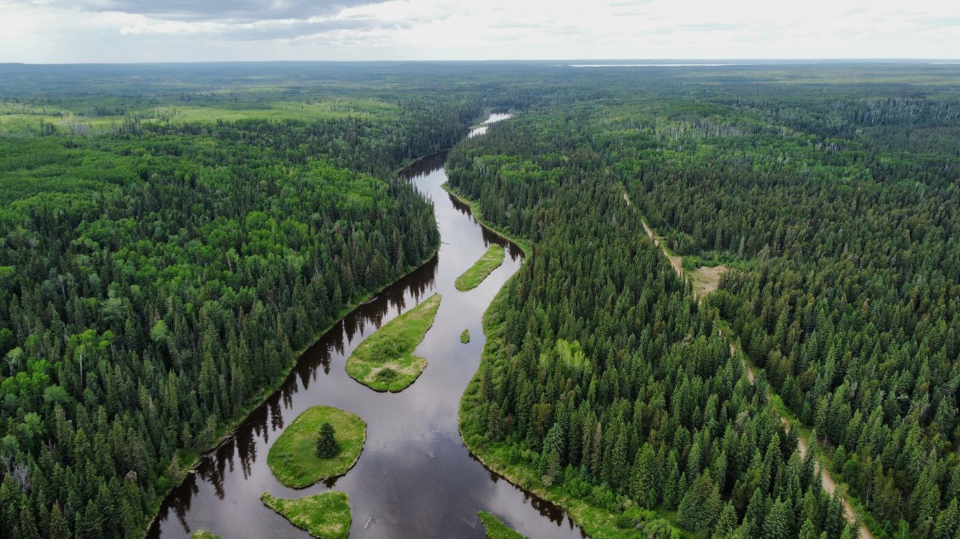 Aerial view of Cold Lake, a large, deep lake on the Alberta–Saskatchewan border within Cold Lake First Nations territory. Photo submitted by Cold Lake First Nations.