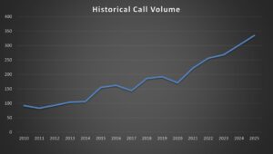 La Ronge Regional Fire Department call volume over the last several years. Courtesy of La Ronge Regional Fire Department by MBC News | Nov 19, 2025