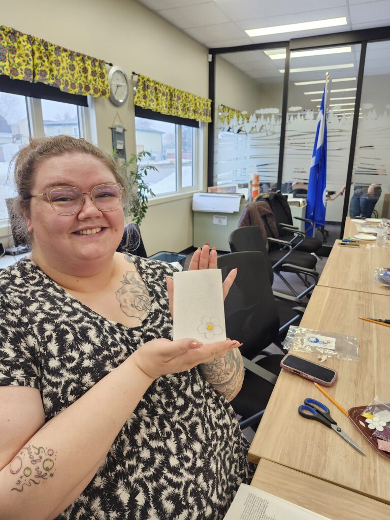 “For me, beading is a cultural practice that connects me to my history and identity as a Metis woman,” said Briley. “When I teach beading, I share cultural teachings and knowledge that I’ve received from Knowledge Keepers, mentors, and my Metis community, and I’m very mindful about where and how I share these teachings.”