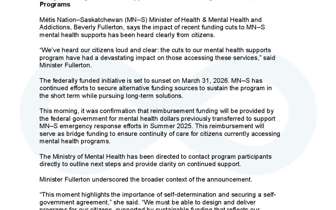 Feb 23 statement on MN–S Mental Health funding