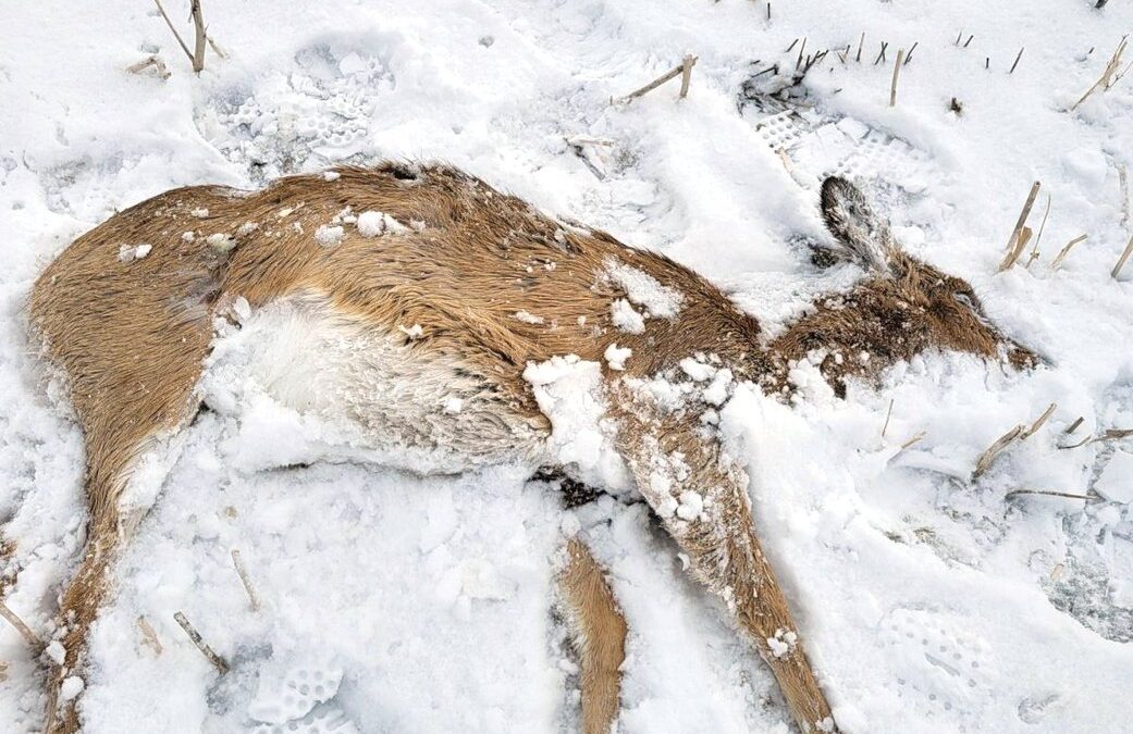 Photo: The remains of a dead deer after it was run down by a truck near Maryfield./ Nicole Taylor, Local Journalism Initiative Reporter