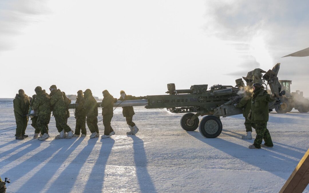Photo: Members of Joint Task Force NUNALIVUT unload an M777 Howitzer heavy artillery gun off the ramp of a CC-130J Hercules aircraft in support of Operation NANOOK-NUNALIVUT at the Cambridge Bay Airport in Nunavut on 15 February, 2026. Photo by: Master Corporal Sarah Morley, Imagery Technician, 4th Canadian Division Support Base Petawawa.